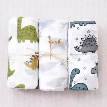 3-Pack Soft Bamboo Cotton Muslin Swaddle Blankets for Newborns & Babies